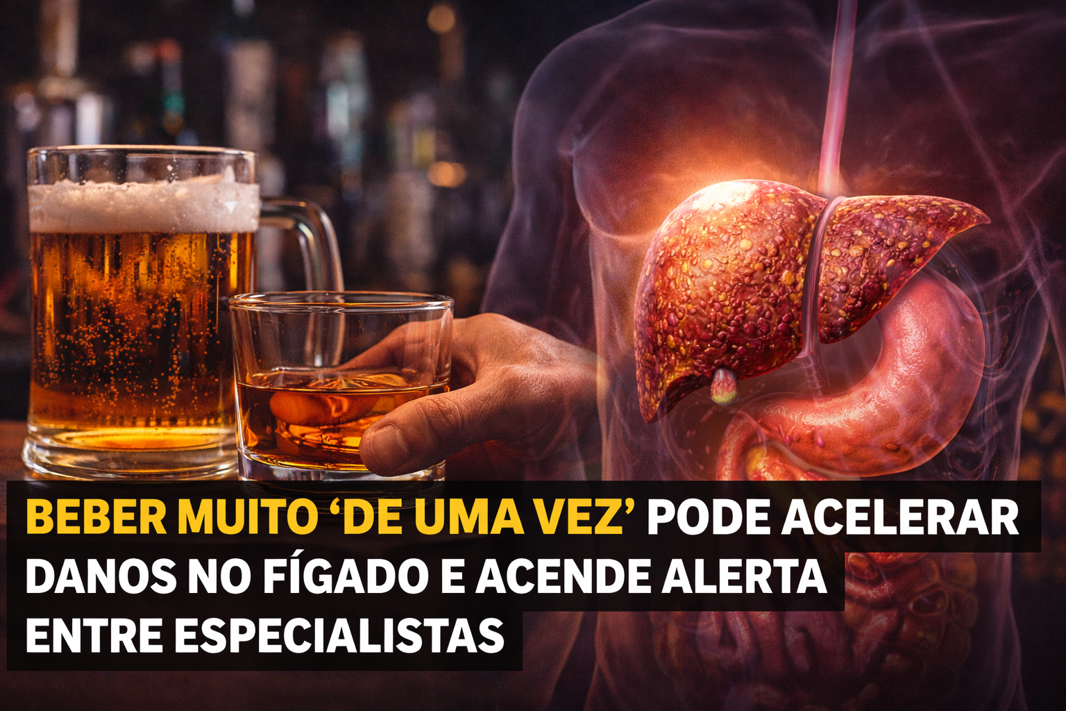 Beber muito “de uma vez” pode acelerar danos no fígado e acende alerta entre especialistas