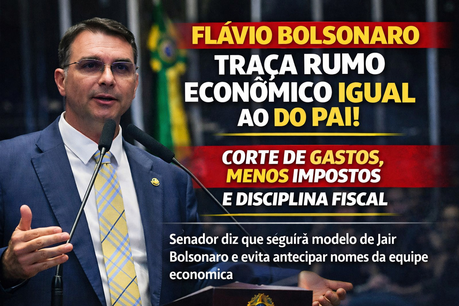 Flávio resumiu a espinha dorsal de sua proposta econômica em três pontos centrais: enquadrar as despesas públicas dentro do orçamento, gastar menos do que o governo arrecada e reduzir impostos. A declaração sinaliza uma defesa de maior controle fiscal e de uma agenda liberal, com apelo ao empresariado e ao eleitorado conservador.